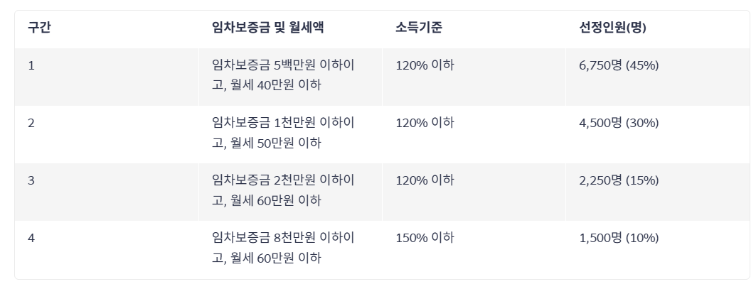 - 보증금 8,000만 원 이하 + 월세 60만 원 이하의 주택에 월세 세입자로 거주 중일 것
