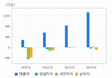 매출액은 지속증가. 특히 2024년 2차전지 업체 이큐셀을 인수후 2차전지 사업부문이 매출액 반영되어 매출액은 급증