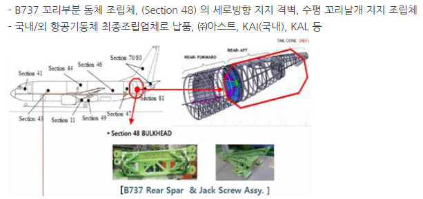 항공기 부품도 생산하고 있으나, 항공 부품 관련주로 분류되지 않음