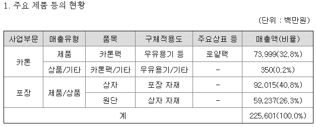 A 우유팩, 음료팩 등 식음료용 종이팩(카톤팩)을 주력으로 생산하며, 2021년부터 골판지 제조도 병행하여 사업을 다각화했습니다.