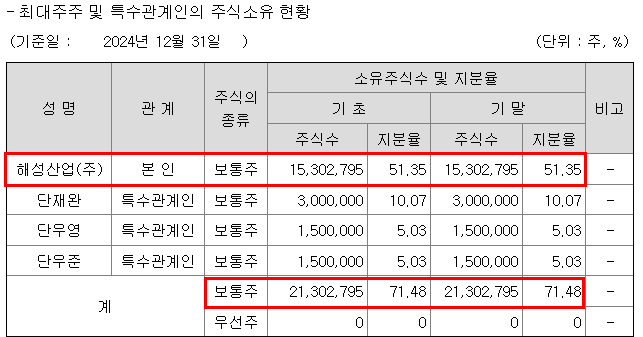 2. 한국팩키지 대주주 보유지분 및 계열사