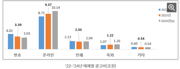 - 2023년 기준 국내 온라인 광고 시장은 약 9조 3,653억 원으로 전체 방송통신광고비의 56.6%를 차지했으며, 전년 대비 7.6% 성장했습니다.