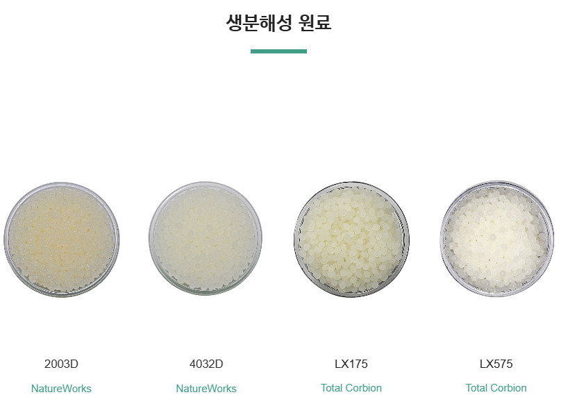 - 일반플라스틱과 같은 특징을 가지면서 생분해가 가능한 친환경 소재. 이것으로 PLA시트를 생산