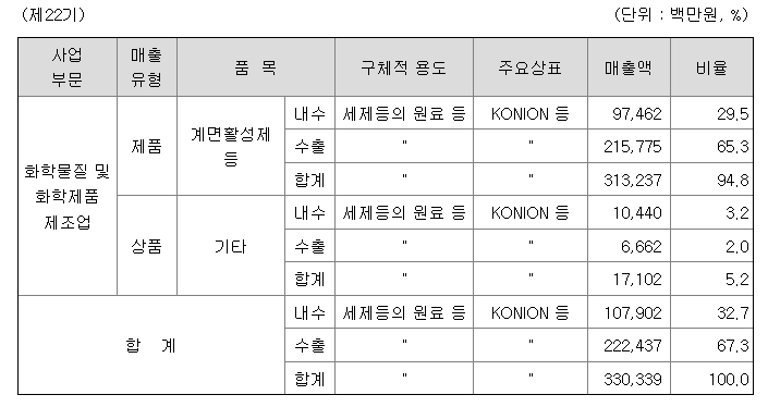 주요사업 : 유기화학제품 및 화공약품 제조 판매