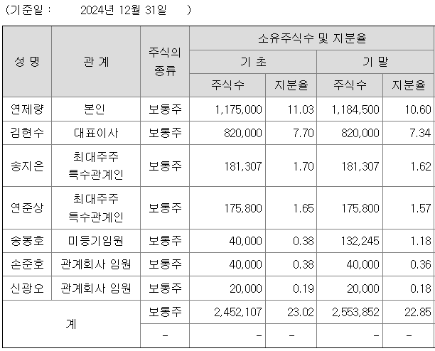 2. 대주주 보유지분 및 계열사