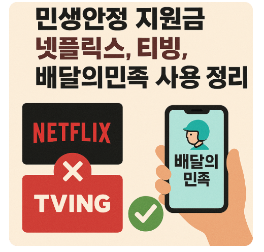 아쉽게도, 티빙, 넷플릭스, 멜론 같은 온라인 정기구독 서비스에서는 민생안정 소비쿠폰 사용이 어렵습니다.