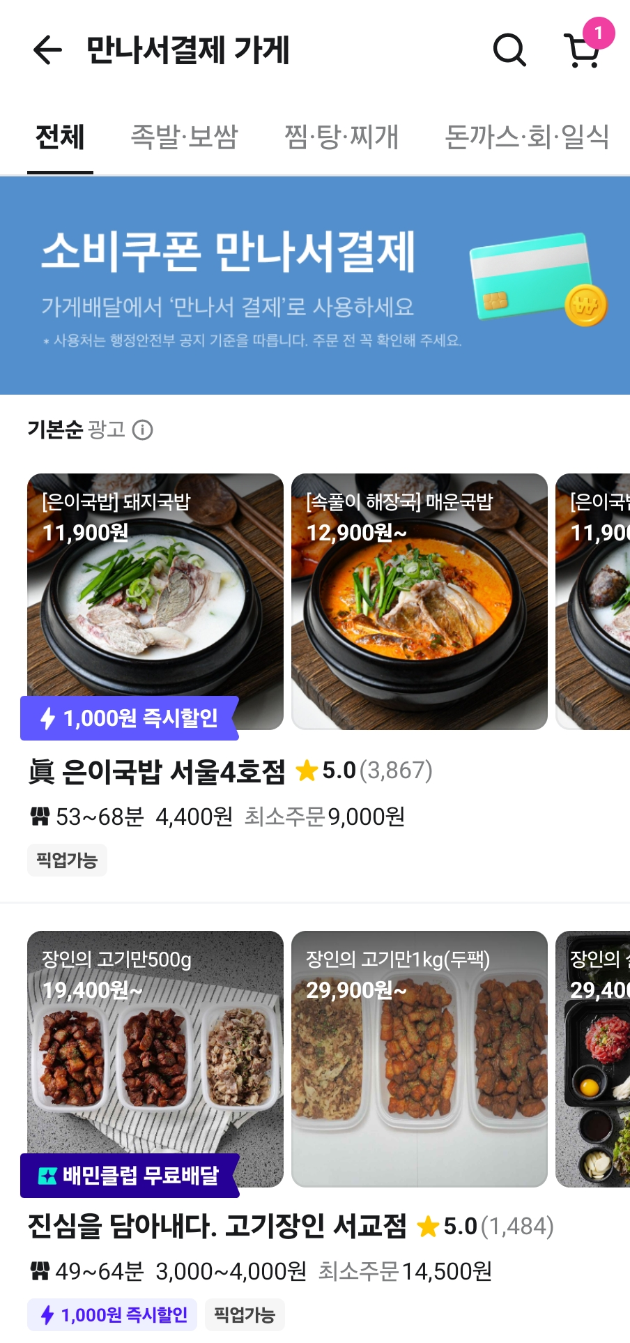 - 만나서 결제하는 가게만 리스트에 나옵니다