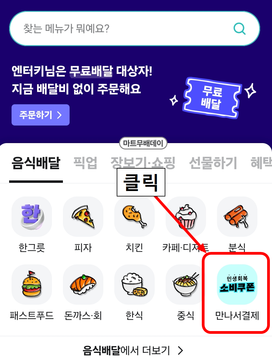 배민어플 메인화면에서 소비쿠폰 선택