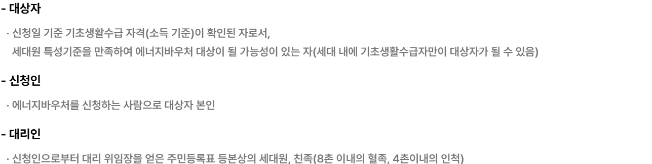 A 에너지바우처는 소득기준과 세대원 특성이 충족되어야 신청 가능합니다. 일반소득 있는 가구는 해당되지 않습니다