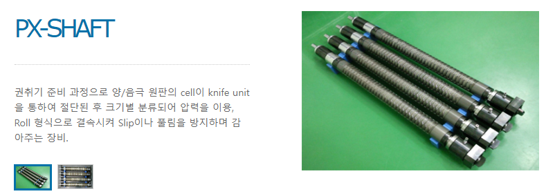 | PX-SHAFT | 극판을 롤 형태로 감아줌 |
