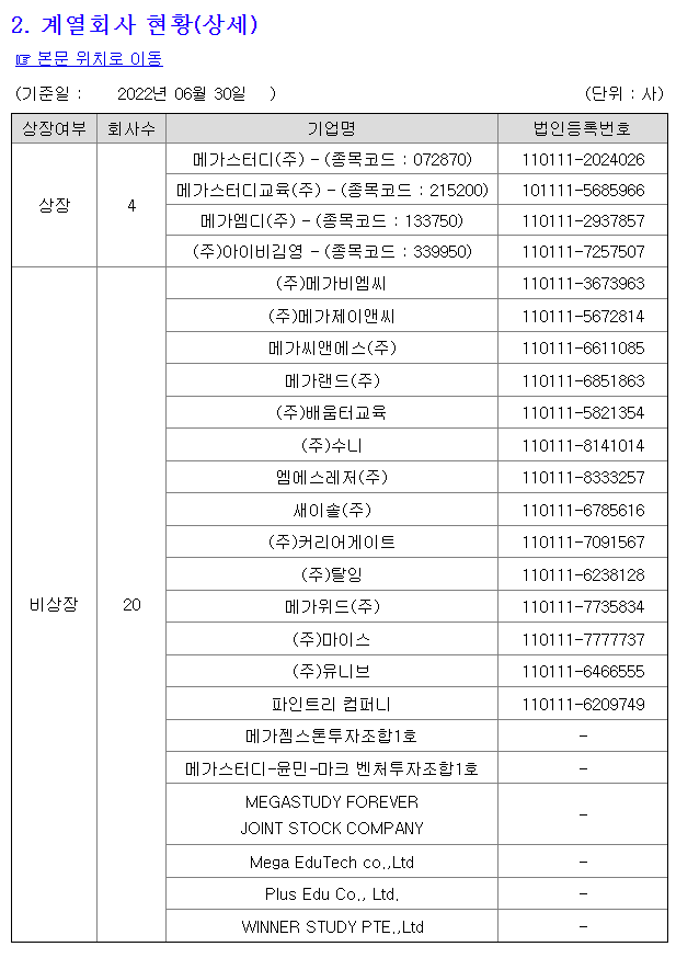 | 메가스터디 | 1,394억 | 지주회사, 종속회사 관리 |