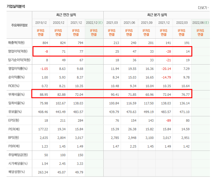 꾸준한 수익과 함께 부채비율도 안정적입니다.