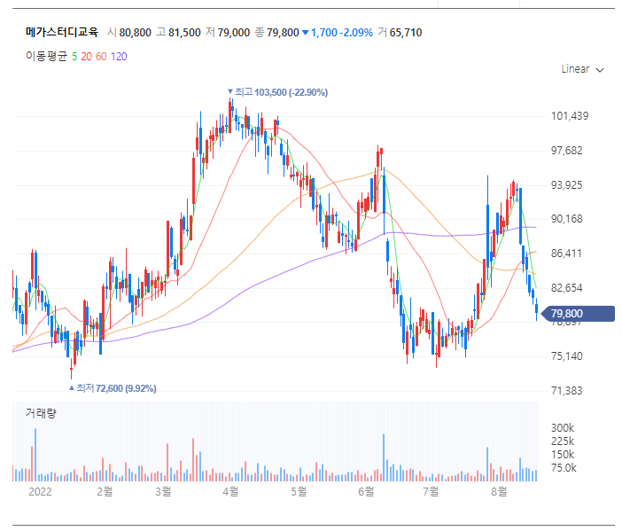 가장 익숙한 이름은 메가스터디일텐데, 메가스터디는 2015년 이후로 투자만 하는 지주회사로 바뀌었습니다. 그리고 다른 지주회사도 마찬가지지만 지주회사는 직접적인 사업을 하지 않기 때문에 주가가 약합니다. 항상 저평가 이야기가 나오지만 주가가 오르지는 않습니다. 그로인해 투자자들의 관심권에서 벗어나 있는 경우가 많습니다.