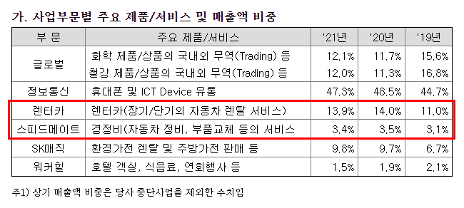 3. 매출이 11조가 넘는 SK네트웍스에서 전기차 충전사업이 차지하는 비중 자체는 크지 않기에 시장에서 얼마나 인정을 해줄것인가가 관건 (2030년까지 SK렌터카의 모든 차량을 전기차나 수소차 전환하려는 계획 등)