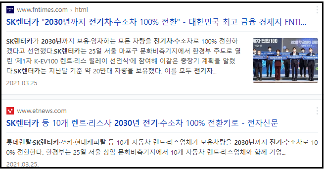 특히 SK렌터카는 2030년까지 모든 차량을 전기차와 수소차로 전환하려 계획중인데 충전소 사업은 그 연장선에 있습니다.