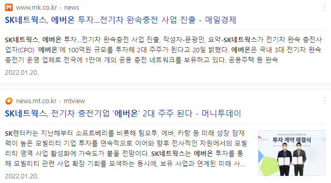 SK네트웍스는 올해초 전기차 완속충전업체에 100억규모를 투자한적이 있습니다.