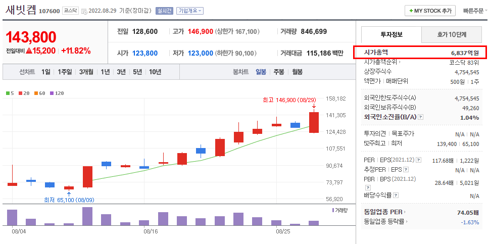 새빗켐은 폐배터리 재활용 업체로서 8월초에 신규 상장한 회사입니다.