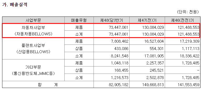 SJM의 매출은 자동차용 벨로우즈가 거의 대부분을 차지하고 있습니다. 2020년에는 자동차용 벨로우즈에서만 1210억, 2021년에는 1300억의 매출이 발생하였습니다. 플랜트사업부 산업용 벨로우즈는 2020년 170억 발생 이후로 계속 감소하고 있습니다. 다만 LNG선의 수주가 확대되면 플랜트 사업부가 수혜를 입을수 있습니다.