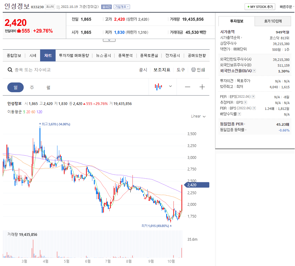 지금까지 데이터센터 관련주에 대해서 알아보았습니다. 종목에서도 차별화가 이루어졌으며 인성정보가 상한가로 강한 모습을 보였습니다. 두번째로 강한 모습을 보인 종목은 에스넷입니다. 그러나 인성정보와 에스넷 모두 재무실적이 좋지 않으니 신중한 투자를 하시기 바랍니다
