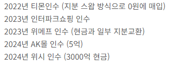 1. 큐익스프레스 주주구성 (1) 티메프 사태 이전 큐텐 (65.8%) 구영배 (29.3%) 합계 95.2% (2) 티메프 사태 이후 FI (재무적투자자) - 1600억 투자자들이 채권을 주식전환 야놀자 (인터파크커머스 매각자) - 못받은 인수금으로 지분 담보권 행사 KKR, 앵커PE, 홍콩계PEF - 큐익스프레스 지분 담보권 행사 지분현황 크레센도 사모펀드 35% 1대주주 야놀자 31% 2대주주 KKR, 앵커PE, 홍콩계 PEF 19% 코스톤아시아, 메티스톤PE, 캑터스PE, 산업은행PE 13% 큐익스프레스 임직원 2% 구영배 대표 0% 큐텐그룹 대표 구영배 한국 1세대 이커머스 경영인 G마켓 창업주 대표 성씨가 구씨라 G마켓이라는 루머 2006년 나스닥 상장 2009년 이베이에 G마켓 매각으로 700..
